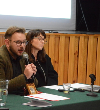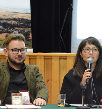 Dr Aleksandra Krupa-Ławrynowicz razem z Kamilem Ludwiczakiem – naszym studentem, opowiadali o wynikach badań, które (razem z dr Alicją Piotrowską) prowadzą w ramach projektu „Aktywne dziedzictwo poprzez etnografię. Lokalna społeczność i jej pamięć we wspólnotowych działaniach na rzecz krajobrazu kulturowego” (program Science Hub Uniwersytetu Łódzkiego i badania własne). Wystąpienie dotyczyło przede wszystkim etnograficznej rekonstrukcji historii rodziny Rozenbaumów ze wsi Dobrogoszczyce, pamiętanej i opowiadanej historii pomocy żydowskiemu chłopcu Mojżeszowi.