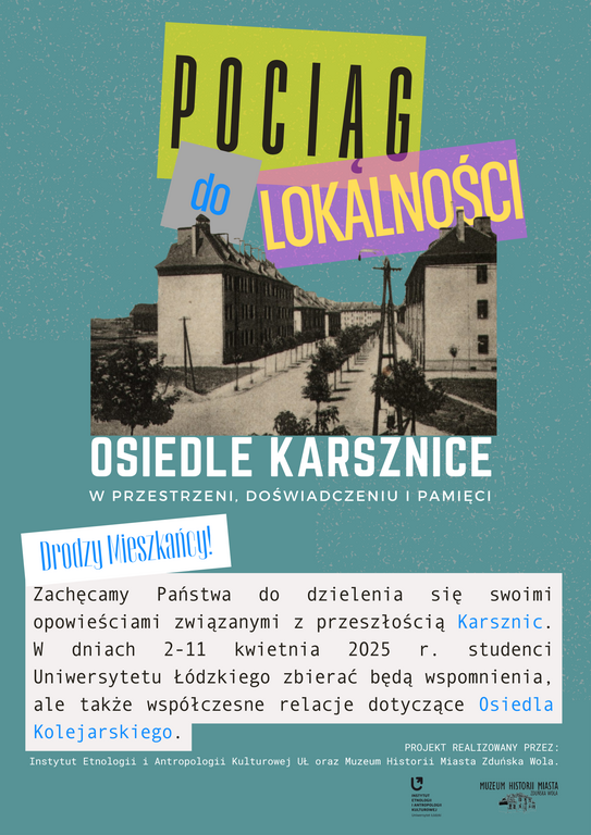 Projekt „Pociąg do lokalności. Osiedle Karsznice w przestrzeni, doświadczeniu i pamięci” realizujemy we współpracy z Muzeum Historii Miasta Zduńska Wola.