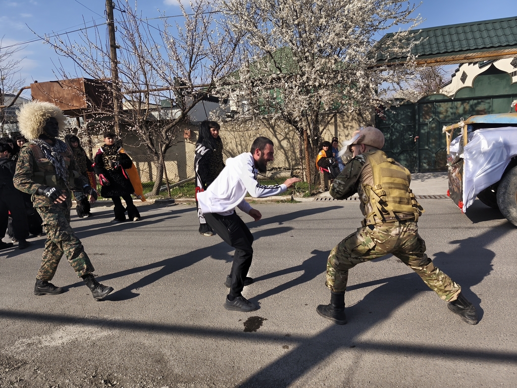 Szczególnym elementem obchodów jest „Kosa-Kosa” – barwne, humorystyczne przedstawienie ukazujące triumf wiosny nad zimą. W Mughanlo mieszkańcy organizują paradę, w której uczestnicy przebierają się za mityczne i historyczne postacie. Z kolei w Jandar 22 marca odbywa się pielgrzymka do świętych drzew „chenarów”, gdzie wierni modlą się o błogosławieństwo w ważnych życiowych sprawach. Ci, których prośby zostały wysłuchane, powracają w kolejnym roku, aby złożyć ofiarę dziękczynną.
