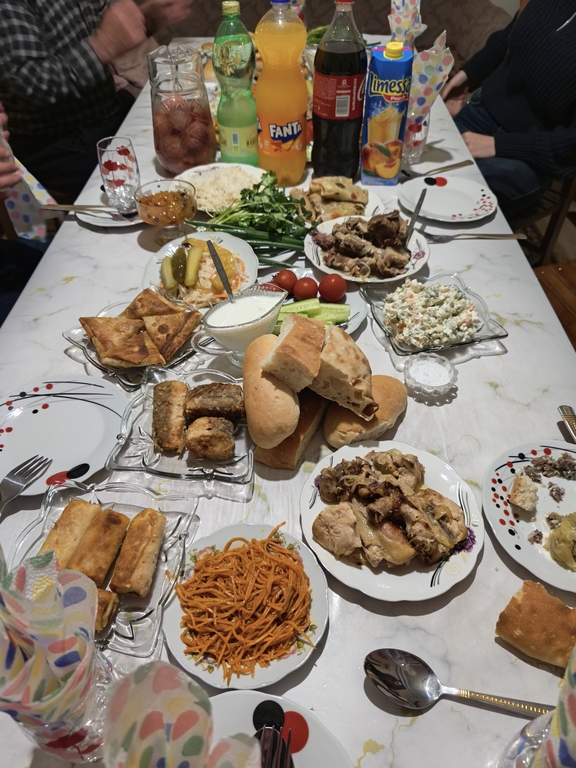 Przed świętem rodziny sprzątają domy, pieką tradycyjne słodycze (shekerbura, pachlawa, inne) i kiełkują pszenicę (samani) jako znak nowego życia. Kluczowym rytuałem jest palenie ognisk, skakanie przez nie co ma oczyścić z nieszczęść minionego roku. Wieczorem rodziny gromadzą się na uroczystej kolacji, na której nie może zabraknąć pilawu, dolmy i słodkich wypieków. W niektórych azerbejdżańskich wsiach świętowanie nabiera wyjątkowego charakteru – organizowane są festyny pełne muzyki, tańca i tradycyjnych zawodów, takich jak zapasy (gulesz) i konkursy rozbijania jajek.