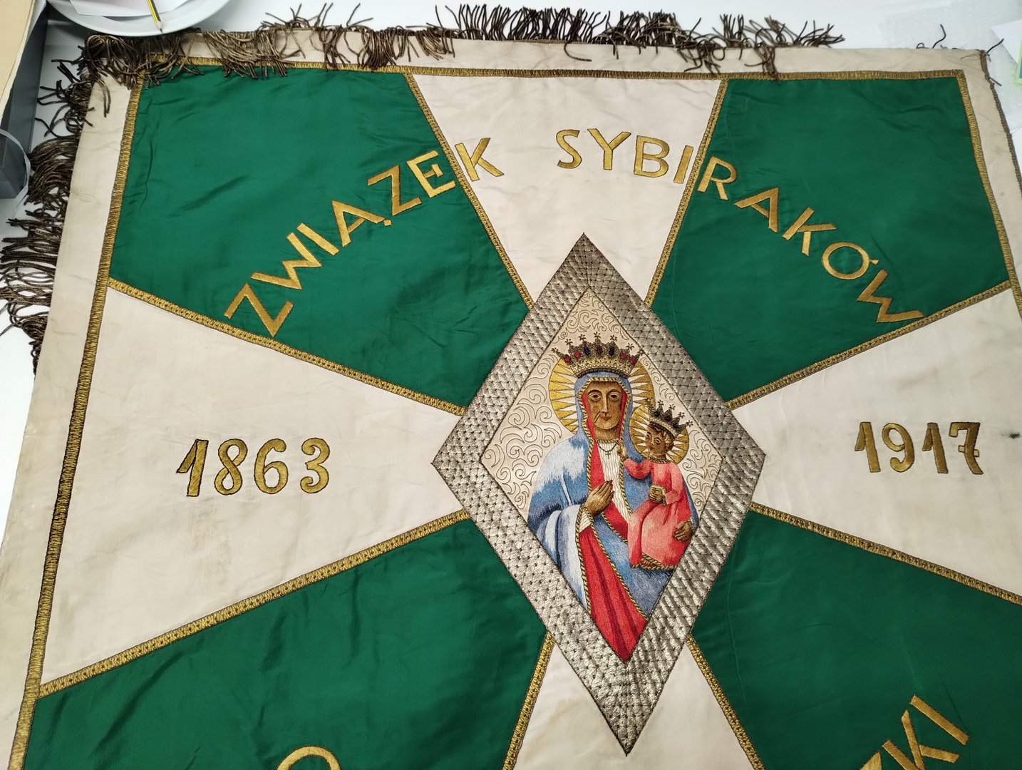 Kolejnym wyjątkowym nabytkiem Archiwum jest oryginalny sztandar Związku Sybiraków z 1928 r., używany przez łódzkie środowisko Sybiraków do 1939 r. W czasie wojny i w okresie powojennym był on ukrywany przez ks. Kazimierza Gawrońskiego, a w 1989 r. przekazany odradzającej się organizacji byłych zesłańców. Sztandar zostanie poddany pracom konserwatorskim, a następnie wyeksponowany w nowej siedzibie Archiwum Sybiraków UŁ.
