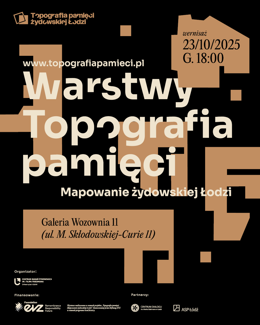 Wystawa „Warstwy. Topografia pamięci” to zaproszenie do wspólnego odkrywania śladów przeszłości w tkance współczesnej Łodzi – miasta, którego żydowska historia pozostaje jednym z jego najważniejszych, choć często ukrytych wymiarów.