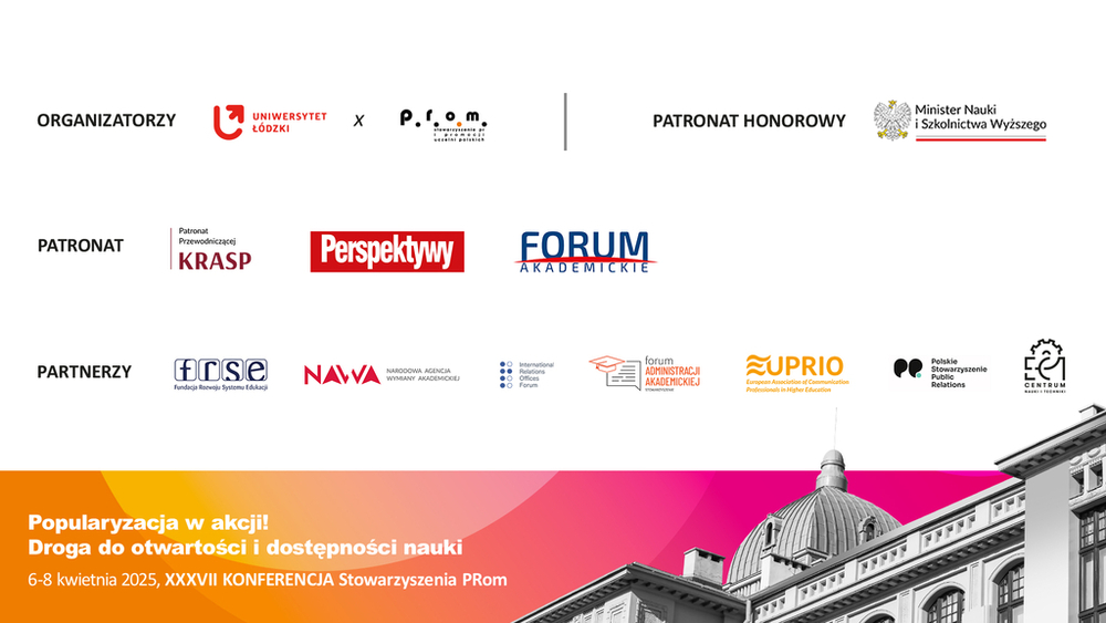 Konferencja „Popularyzacja w akcji! Droga do otwartości i dostępności nauki”, której organizatorami były Stowarzyszenie PR i Promocji Uczelni Polskich „PRom” i Uniwersytet Łódzki, była nie tylko platformą do wymiany doświadczeń i wiedzy, ale także doskonałą okazją do budowania relacji i współpracy przedstawicieli świata akademickiego oraz praktyków z zakresu public relations, promocji i komunikacji.
