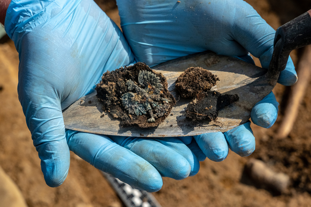 Eagle from an official's cap found in a mass grave in the Death Valley (photo by D. Frymark)
