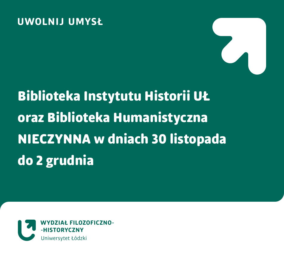 Biblioteka Instytutu Historii UŁ oraz Biblioteka Humanistyczna NIECZYNNA w dniach 30 listopada-2 grudnia.