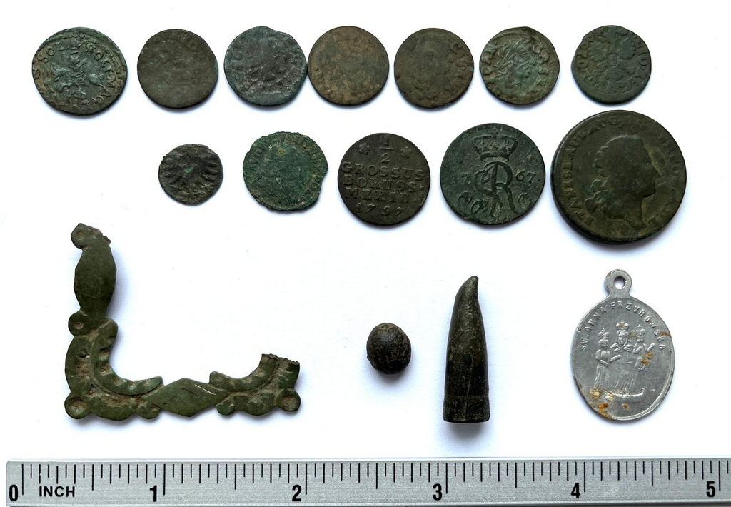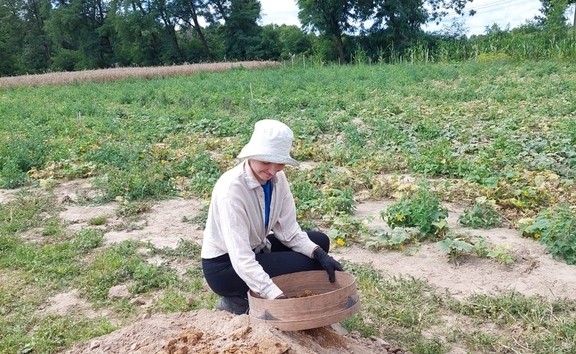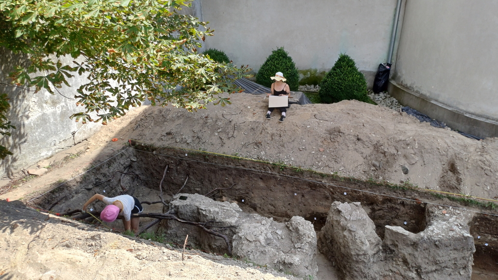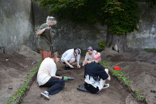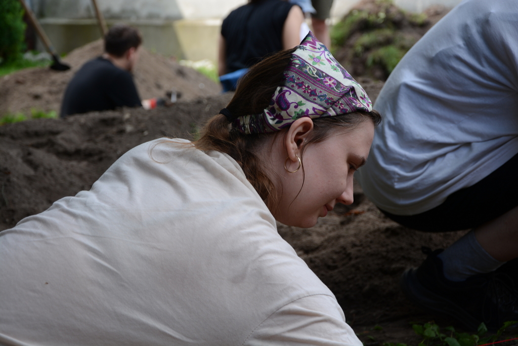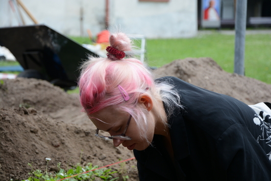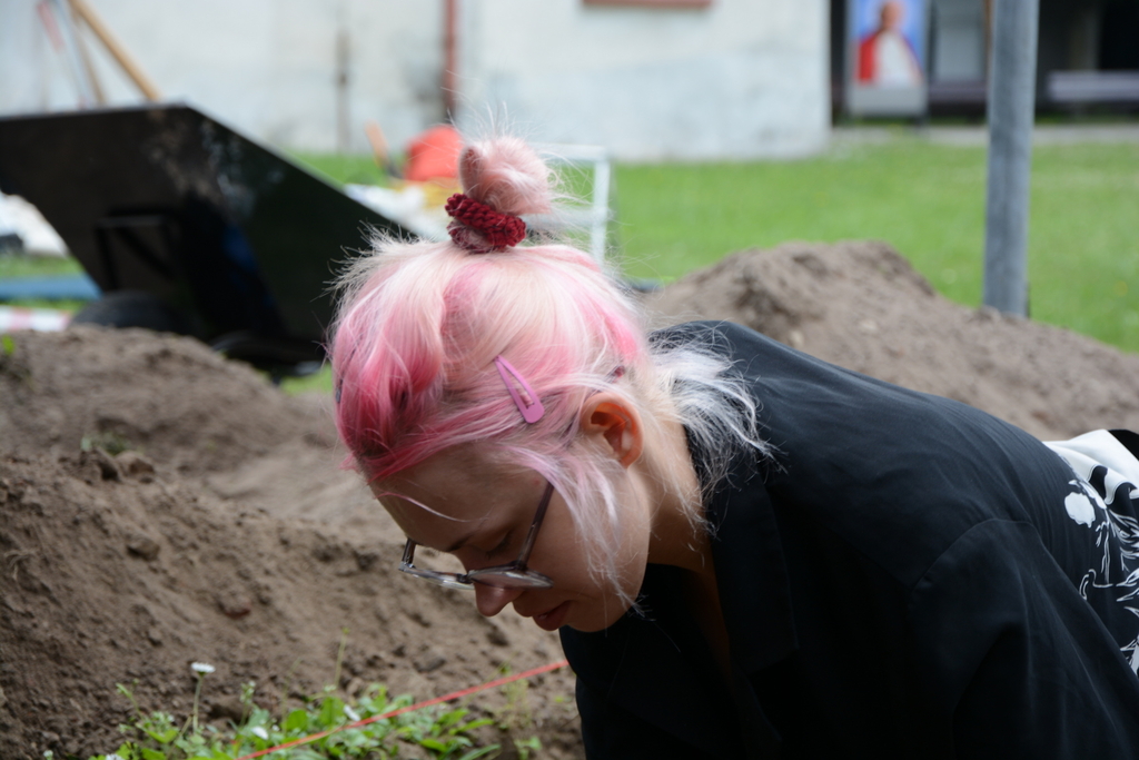 Podobnie jak w poprzednich sezonach badawczych nasi studenci uczestniczyli rotacyjnie w pracach terenowych na obydwu stanowiskach archeologicznych. W Staromieściu zdobywali wykopaliskowe doświadczenia pod okiem mgr Anny Garstki na południowy-zachód od kościoła Wniebowzięcia NMP, którego historia sięga XII w. Wyniki dotychczasowych badań przeprowadzonych z drugiej strony kościoła w latach 2022–2023 przez mgr. Radosława Zdaniewicza pozwoliły potwierdzić oraz jednocześnie rozpoznać północno-wschodni skraj oraz północno-zachodni obszar osady wczesnośredniowiecznej. W wyniku tych prac archeologicznych natrafiono m. in. na relikty pieca, ołowiane odważniki, srebrne monety, w tym denar Władysława Wygnańca z 1. poł. XII w., wczesnośredniowieczną ostrogę z piramidalnym, pozłacanym bodźcem oraz dużą liczbę fragmentów ceramiki naczyniowej używanej w okresie wczesnego i późnego średniowiecza oraz w czasach nowożytnych.
