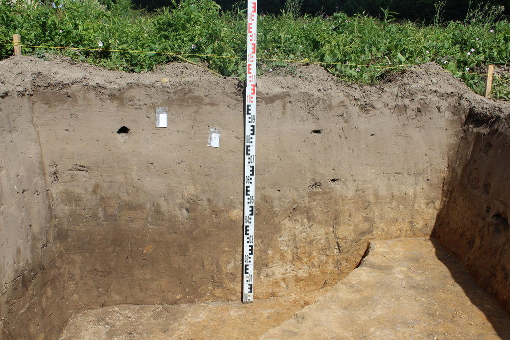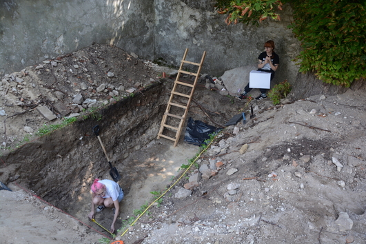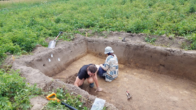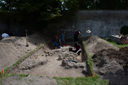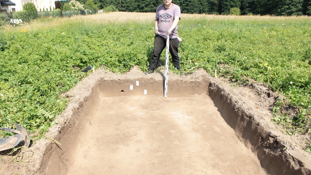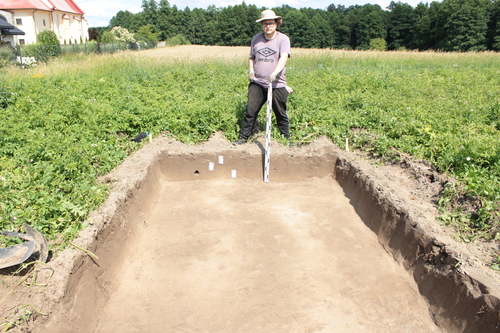 W trakcie tegorocznych badań założono dwa wykopy archeologiczne, które miały na celu weryfikację południowo-zachodniej granicy osady. W jednym z wykopów odkryto sporych rozmiarów obiekt o niejednorodnej i przemieszanej warstwie wypełniskowej, w której odnaleziono denar jagielloński (najprawdopodobniej jest to denar Władysława Warneńczyka z 1 poł. XV wieku) oraz fragment pierścionka.