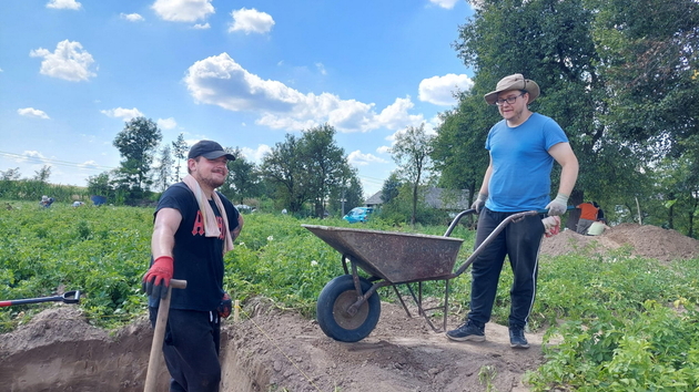 Snuliśmy też plany przyszłorocznych badań. W tym celu obejrzeliśmy domniemane miejsce pochówku młodego małżeństwa w lesie niedaleko Białej Wielkiej koło Lelowa, które zginęło wyrokiem polskiego podziemia w 1944 r. Być może w kolejnym sezonie badawczym i to miejsce uda się nam poddać weryfikacji archeologicznej. Jak co roku spotkaliśmy się z Mirosławem Skrzypczykiem, Prezesem Lelowskiego Towarzystwa Historyczno-Kulturalnego, laureatem nagrody POLIN, z którym omawialiśmy pomysły na kolejne jurajskie podróże do przeszłości. W trakcie badań odwiedzali nas też nasi przemili absolwenci.