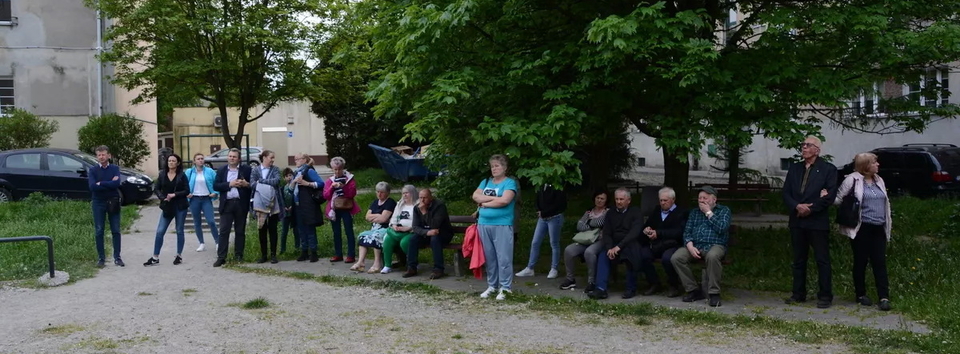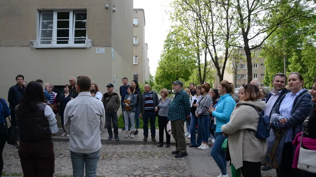 Wizyta członków i członkiń Lelowskiego Towrzystwa Historyczno-Kulturalnego na osiedlu Mireckiego.
