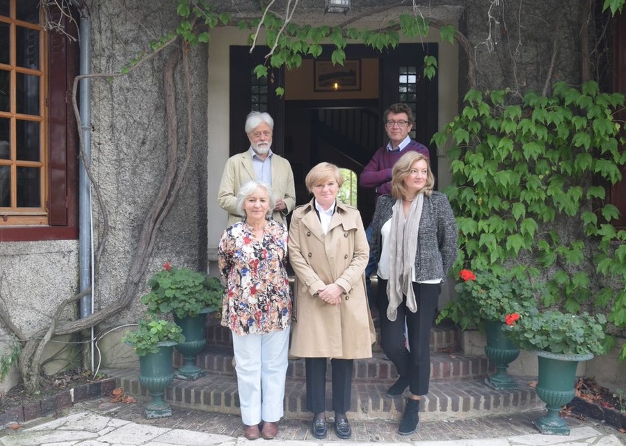 Rektor UŁ prof. Elżbieta Żądzińska i kanclerz UŁ Kamila Szcześniak z zespołem Instytutu Literackiego Kultura przed wejściem do Maisons-LaffitteRektor UŁ prof. Elżbieta Żądzińska i kanclerz UŁ Kamila Szcześniak z zespołem Instytutu Literackiego Kultura przed Maisons-Laffitte.