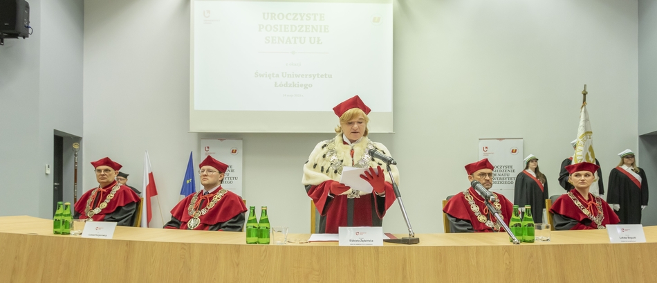 Posiedzenie Senatu rozpoczęło wprowadzenie na salę sztandaru Uniwersytetu Łódzkiego oraz odśpiewanie przez uniwersytecki chór hymnu państwowego. Rektor UŁ prof. Elżbieta Żądzińska powitała zaproszonych na uroczystość gości: przedstawicieli innych łódzkich uczelni, dziekanów wydziałów UŁ, reprezentantów administracji wojewódzkiej i samorządowej.