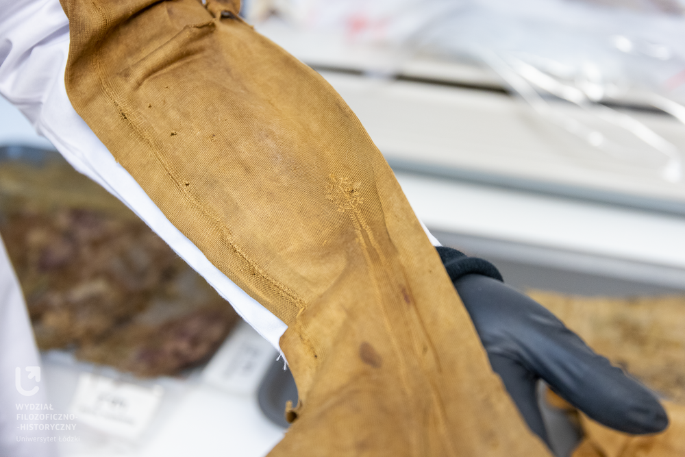 Tekstylia stanowiły najliczniejszą grupę. W celu ich identyfikacji i prawidłowego skatalogowania badaczka wykorzystała metodę typologiczną, indywidualnych przypadków i metody służące rozpoznaniu przedmiotu/surowca oraz ocenie stopnia biodegradacji materiału.