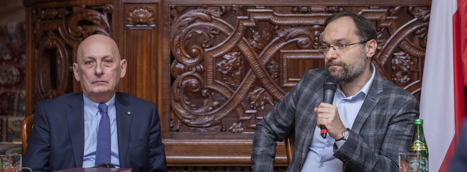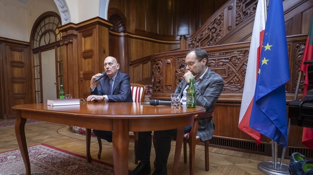 Rozmowę z ambasadorem Tomaszem Orłowskim na temat uniwersalnych zasad rządzących dyplomacją i tradycji odsyłającej do wspólnego państwa Polski i Litwy poprowadził dr hab. Tomasz Kamiński, prof. UŁ, z Wydziału Stosunków Międzynarodowych i Politologicznych. Znakomity gość mówił również o „Praktyce dyplomatycznej” – swym monumentalnym dziele, stanowiącym sumę jego wiedzy o polityce międzynarodowej, a także erudycji i ogromnego doświadczenia w dyplomacji. Przedstawił tajniki Protokołu Dyplomatycznego, a także widoczną w ceremoniale i obyczajowości protokolarnej wspólnoty polsko-litewskiej. Odnosił się też do modyfikacji roli dyplomacji we współczesnym świecie i jej najtrwalszych, niezmiennych wartości.