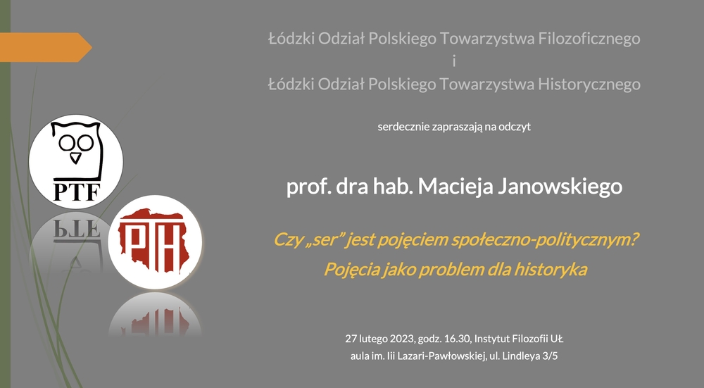 Serdecznie zapraszamy na połączone spotkanie Łódzkich Oddziałów Polskiego Towarzystwa Filozoficznego i Polskiego Towarzystwa Historycznego.