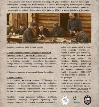 W tej części warsztatów studenci z naszego Koła przedstawią referaty pogłębiające tematykę archeologii katyńskiej w kontekście tworzących się standardów uprawiania archeologii współczesności. Mamy nadzieję, że uda nam się zaangażować Was w dyskusje i zadania grupowe.