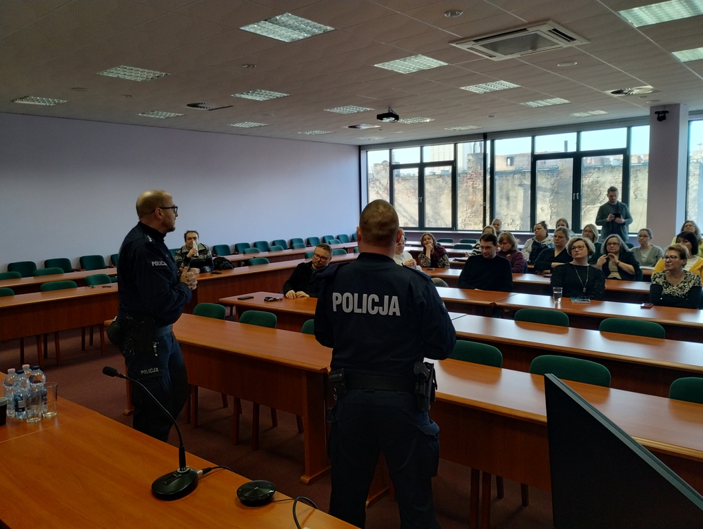 To wydarzenie było inauguracją nowego cyklu spotkań poświęconych bezpieczeństwu, organizowanych dla pracowników naszej uczelni. Współpraca z Komendą Wojewódzką Policji w Łodzi, rozpoczęta w 2018 roku, przynosi już wiele owoców, a to szkolenie jest tego doskonałym przykładem.
