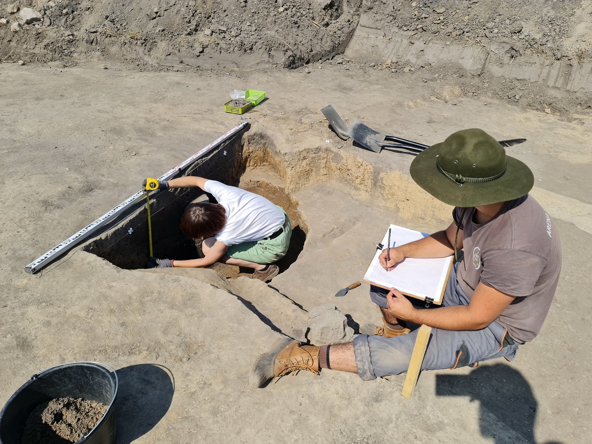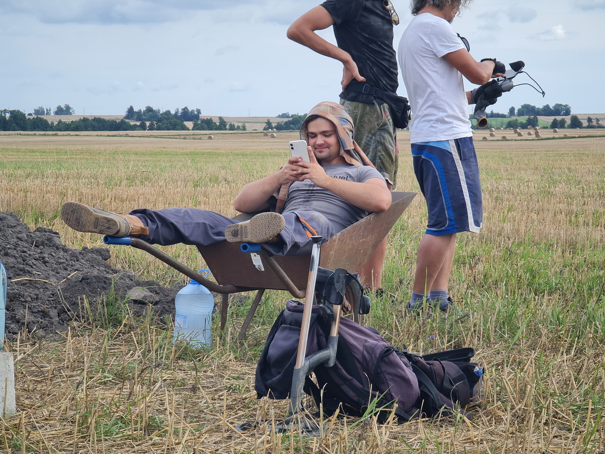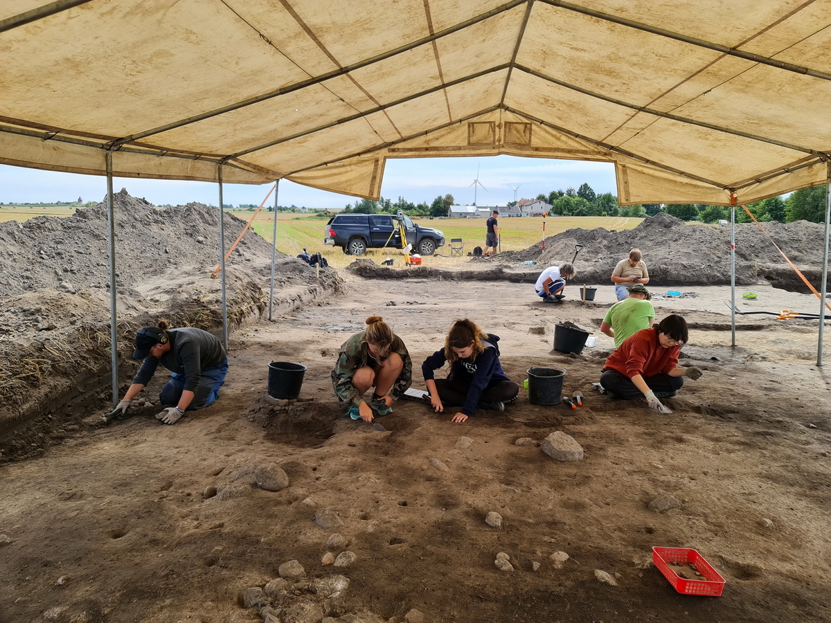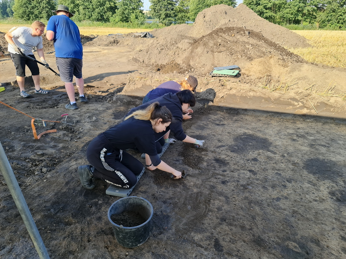 Tegoroczne badania były wprost kontynuacją działań zeszłorocznych, które z powodu zdarzeń losowych nie mogły być zakończone. Prace koncentrowały się w rejonie skupiska grobów, które uważać można za pochówki miejscowej elity z XI i XII wieku. Oprócz licznych śladów osadnictwa z okresu wczesnej epoki żelaza, które można utożsamiać z ludnością tzw. grupy wielkowiejskiej kultury pomorskiej oraz okresem rzymskim, udało się przebadać 6 pochówków inhumacyjnych z XI–XII wieku. Wszystkie zawierały osobiste wyposażenie zmarłych, czyli noże żelazne (zazwyczaj z ozdobnymi pochewkami z okuciami z brązu). Ponadto w jednym z grobów odkryliśmy przęślik gliniany, w innym srebrny denar krzyżowy. W grobie numer 94 udało się odnaleźć żelazne obręcze i kabłąk niewielkiego wiaderka. Podobne wiaderka znajduje się niekiedy w pochówkach z X–XII wieku. Był to drugi grób w Ostrowitem zawierający taki przedmiot. Z kolei w grobie 93 na kościach udowych pochowanej tu osoby spoczywała niewielka misa brązowa. Był to już szósty grób rozpoznany w Ostrowitem, który zawierał podobny przedmiot. Od 2020 roku, co roku udaje się nam odnajdywać kolejny taki pochówek. W całej dzisiejszej Polsce odkryto ich około 40 z okresu między schyłkiem X a XII wiekiem. Zwykle na cmentarzyskach znajduje się jeden lub dwa groby zawierające misy brązowe. Ostrowite należy więc do absolutnych rekordzistów w tej kategorii zabytków. Ze względu na ich rzadkość możemy uznawać je za pochówki przedstawicieli ówczesnych elit. Warto zaznaczyć, że zrealizowanie badań było możliwe dzięki licznemu gronu studentów archeologii, ale także pomocy studentek antropologii biologicznej z naszego Uniwersytetu, które przybyły do nas pod opieką dr Beaty Borowskiej oraz uczniów Bednarskiej Szkoły Realnej z Warszawy, którzy po raz kolejny realizowali w Ostrowitem swój program „Archeo”.
