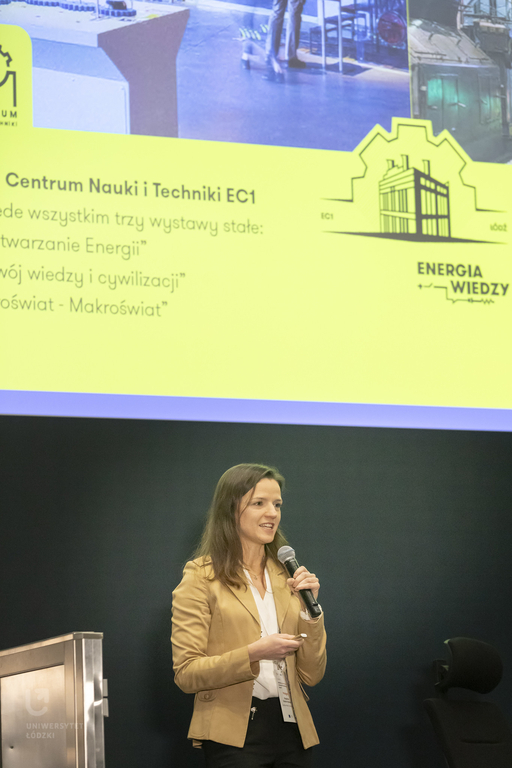 Kolejną prelekcję przygotowała dr Magdalena Kosiada-Sylburska, kierowniczka Centrum Nauki i Techniki EC1, która w 2018 połączyła swoje życie zawodowe i pasję z pracą naukową na Uniwersytecie Łódzkim, co udało się sfinalizować obroną doktoratu wdrożeniowego w 2023 r. Jej zainteresowania naukowe koncentrują się na zaangażowaniu konsumentów w projektowanie usług w instytucjach kultury i współtworzeniu w sektorze kultury. W wystąpieniu zaprezentowała wspólne projekty, badania i przedsięwzięcia prowadzone z instytucjami nauki a EC1.