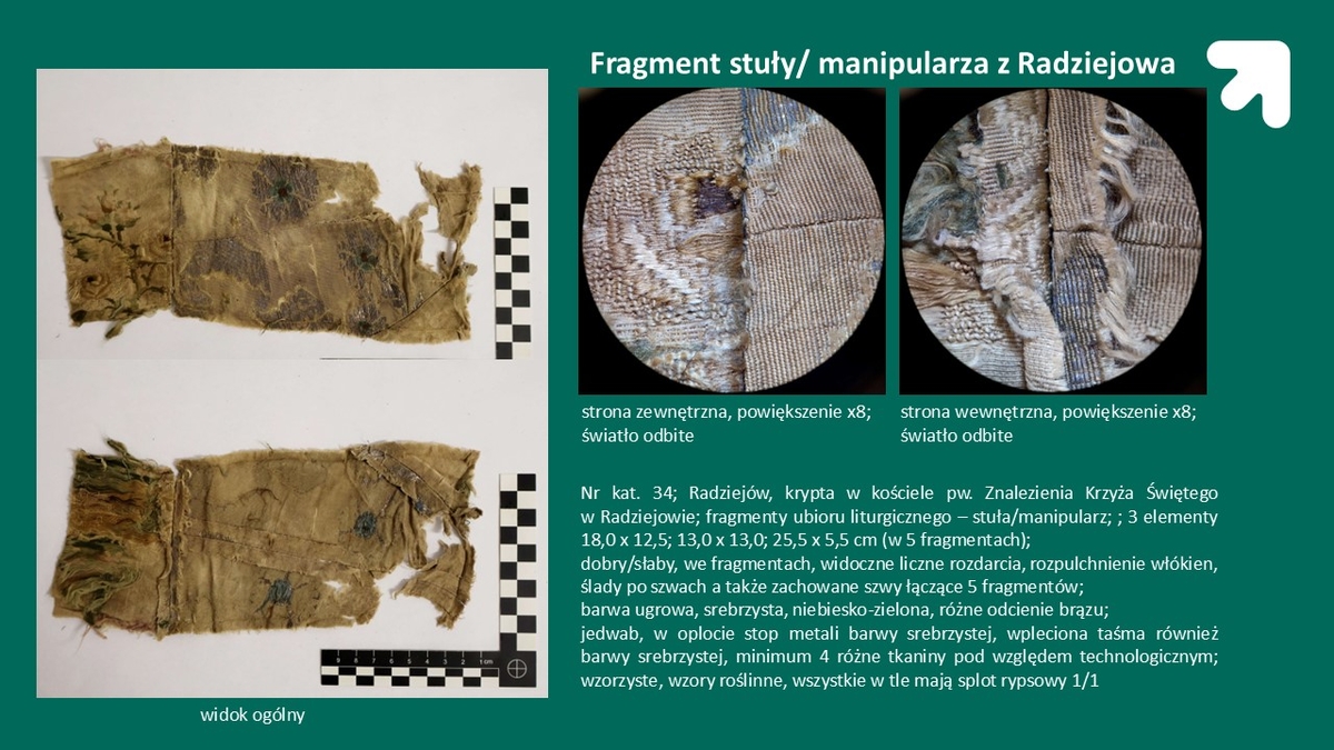 Instytut Archeologii Uniwersytetu Łódzkiego reprezentowała dr Magdalena Majorek-Lipowicz (Pracownia Datowania i Konserwacji Zabytków) wygłaszając referat pt. „Zastosowanie metod archeometrycznych w identyfikacji przeróbek i napraw krawieckich na przykładzie wybranych tekstyliów archeologicznych”. Podczas swojego wystąpienia prelegentka omówiła metody badań bezpośrednich, oceny wizualnej z wykorzystaniem mikroskopii (konstrukcja, stan zachowania, identyfikacja wizualna koloru, dekoracja, struktura tkaniny i przędzy, nieregularności i wady, identyfikacja surowcowa) oraz zastosowanie mikroskopii optycznej i elektronowej (skaningowej mikroskopii elektronowej i mikroskopii w świetle przechodzącym), metod fotografii technicznej (RTI/PTM), a także fluorescencyjnej analizy rentgenowskiej (XRF) w kontekście nowożytnych wyrobów włókienniczych z badań archeologicznych. Program konferencji był wypełniony po brzegi. Łącznie wygłoszono ponad 45 referatów i zaprezentowano ponad 10 posterów.