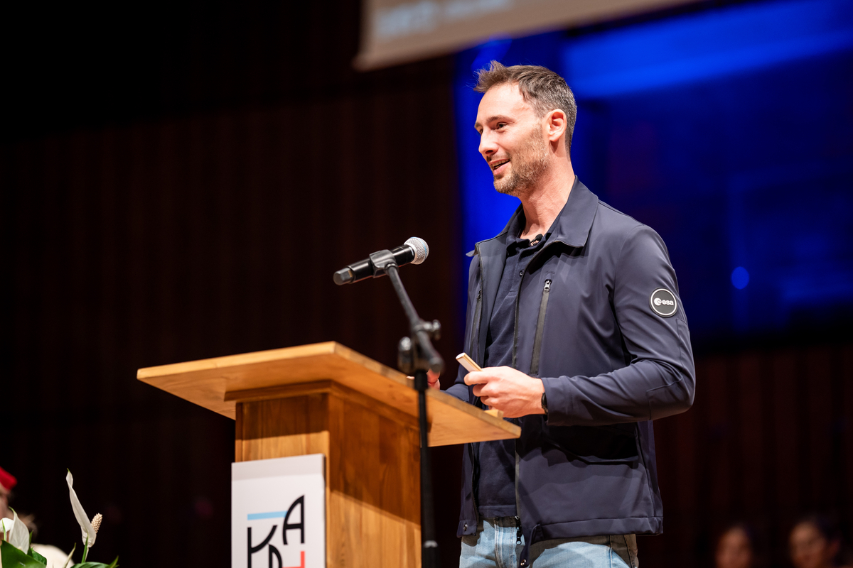 Na zakończenie części oficjalnej inauguracji wykład wygłosił dr inż. Sławosz Uznański absolwent Politechniki Łódzkiej – astronauta rezerwowy Europejskiej Agencji Kosmicznej.