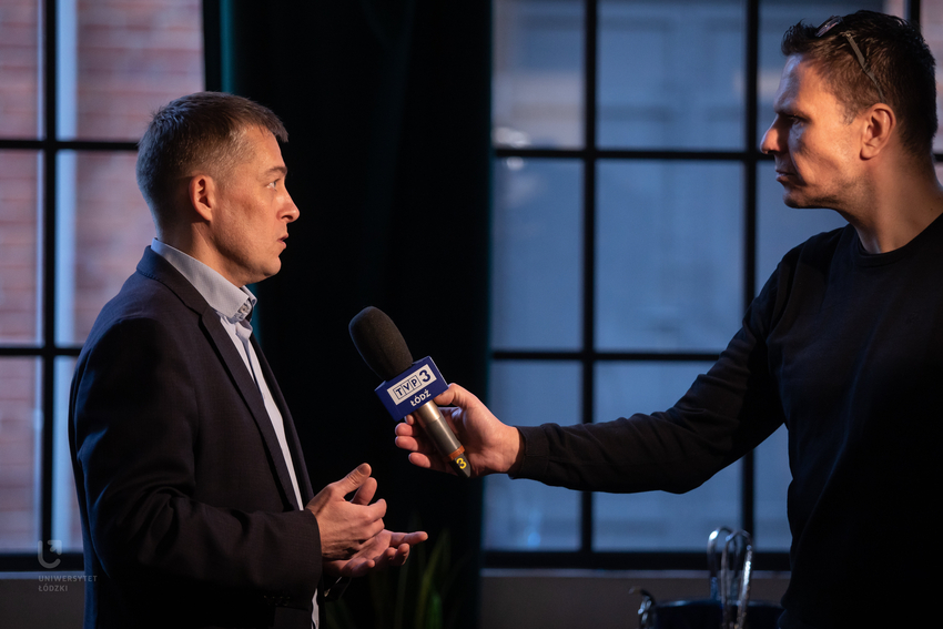 Mężczyzna udziela wywiadu dziennikarzowi z mikrofonemJednym z najbardziej obleganych ekspertów był prof. Piotr Szukalski, demograf z Wydziału Ekonomiczno-Socjologicznego.