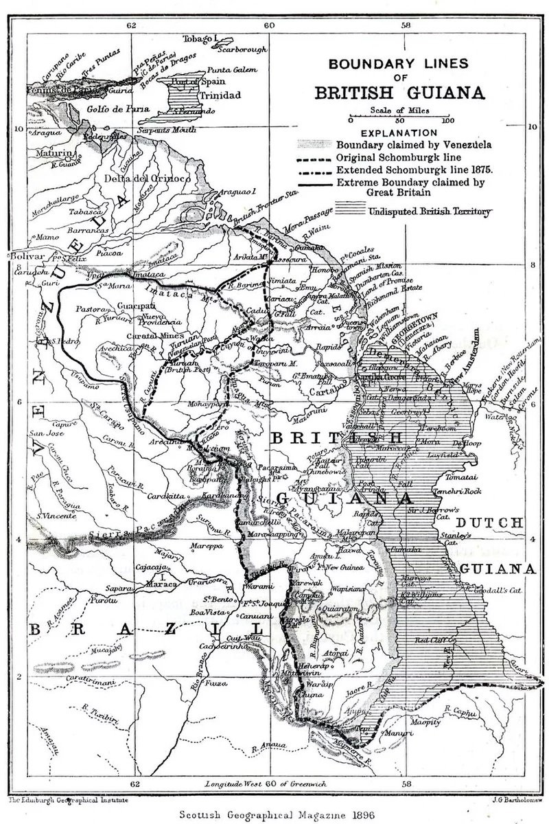Jednak porozumienie ustalało jedynie granicę wschodnią Gujany, pozostawiając otwarte pytanie o granicę zachodnią z Wenezuelą. W 1835 wyprawa Schomburgka ustaliła przebieg granic, znacznie przekraczającą zakres rzeczywistej okupacji brytyjskiej prawie aż do rzeki Orinoko.