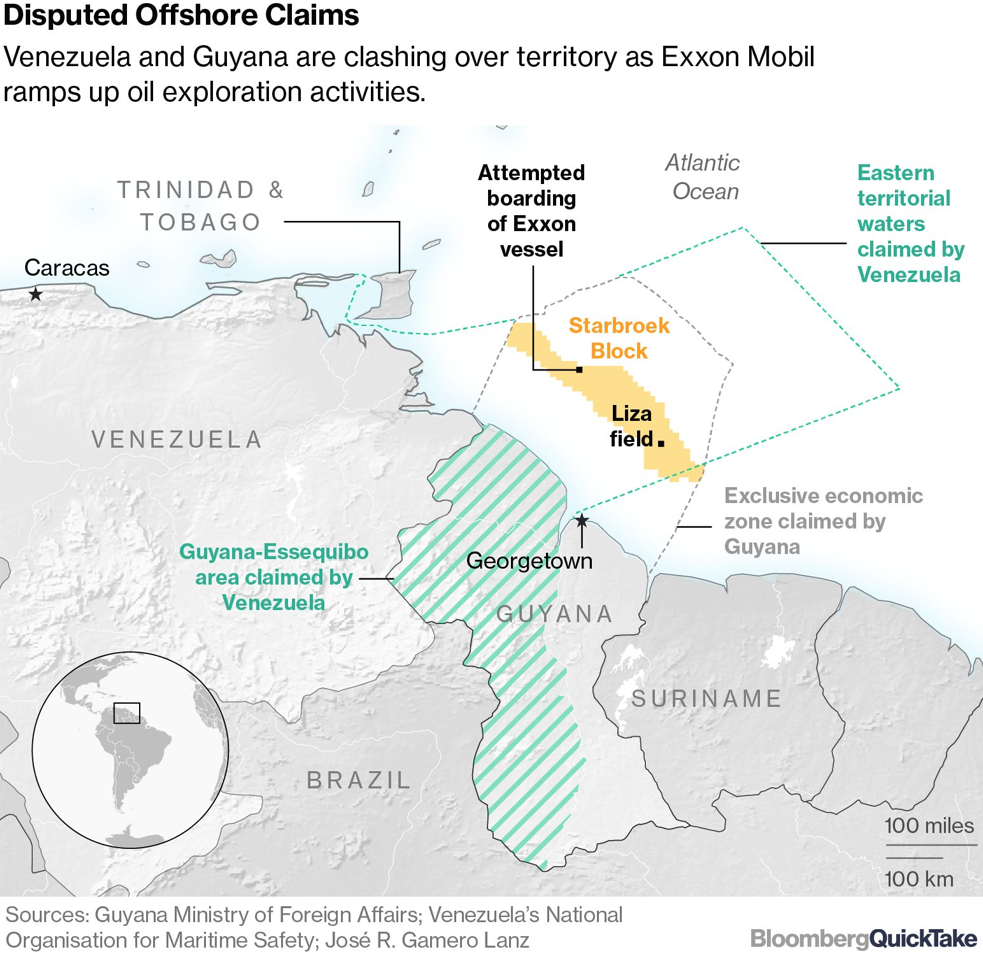 Artykuł z portalu Bloomberg Venezuela Stirs Nationalism in Dispute With Guyana Over Oil