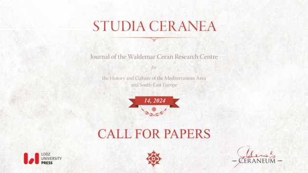 Czasopismo „Studia Ceranea. Journal of the Waldemar Ceran Research Centre for the History and Culture of the Mediterranean Area and South-East Europe” zaprasza do przesyłania tekstów do najnowszego numeru (14/2024).