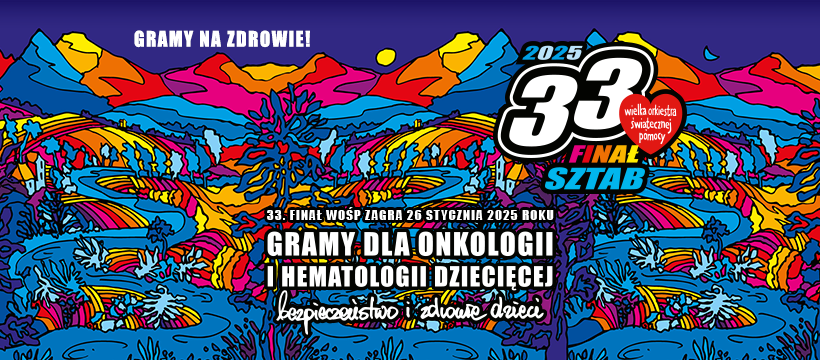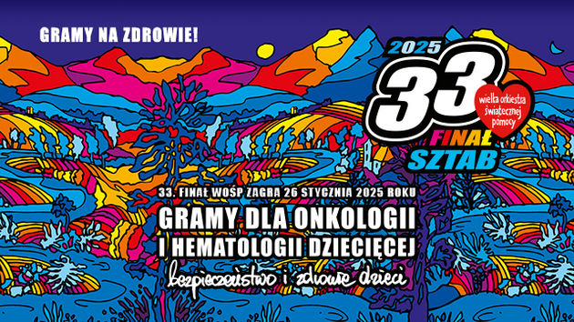 W tym roku WOŚP gra dla onkologii i hematologii dziecięcej! Motywem przewodnim 33. Finału jest bezpieczeństwo i zdrowie dzieci.