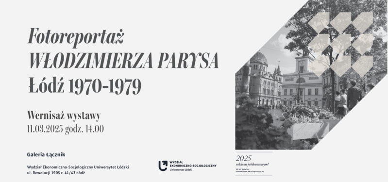 Zapraszamy na wernisaż wystawy „Fotoreportaż Włodzimierza Parysa: Łódź 1970-1979”, który odbędzie się 11 marca 2025 o godzinie 14.00 w Galerii Łącznik na Wydziale Ekonomiczno-Socjologicznym UŁ. Wystawę będzie można oglądać do końca czerwca 2025.